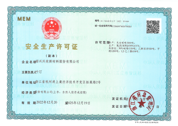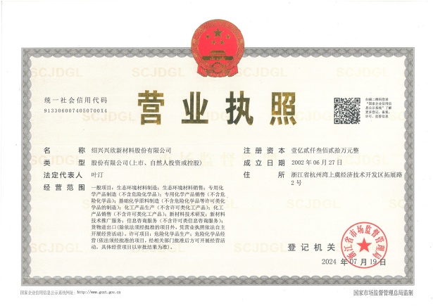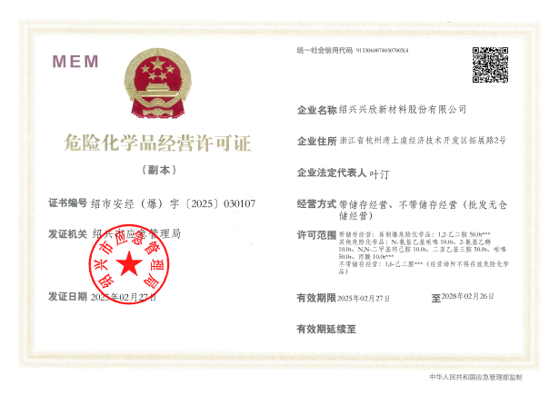 紹興興欣新材料股份有限公司成立于2002年06月27日,占地面積122畝,位于杭州灣上虞經(jīng)濟技術(shù)開發(fā)區(qū)拓展路2號,現(xiàn)有職工200余人,專業(yè)技術(shù)人員50余人;博士、碩士研究生30余人組成的一支知識型、專業(yè)化的技術(shù)科研團隊。公司面向全球市場,專業(yè)開發(fā)電子化學(xué)品、環(huán)?;瘜W(xué)品、醫(yī)藥中間體、高分子材料等先進新材料重點領(lǐng)域的省級科技型企業(yè);建有浙江上虞、安徽東至兩個生產(chǎn)基地。目前為“國家高新技術(shù)企業(yè)”、浙江省“隱形冠軍”企業(yè)、浙江省專精特新中小企業(yè);建有“省級”研究開發(fā)中心,共建天津大學(xué)浙江紹興研究院電子化學(xué)品研發(fā)中心。